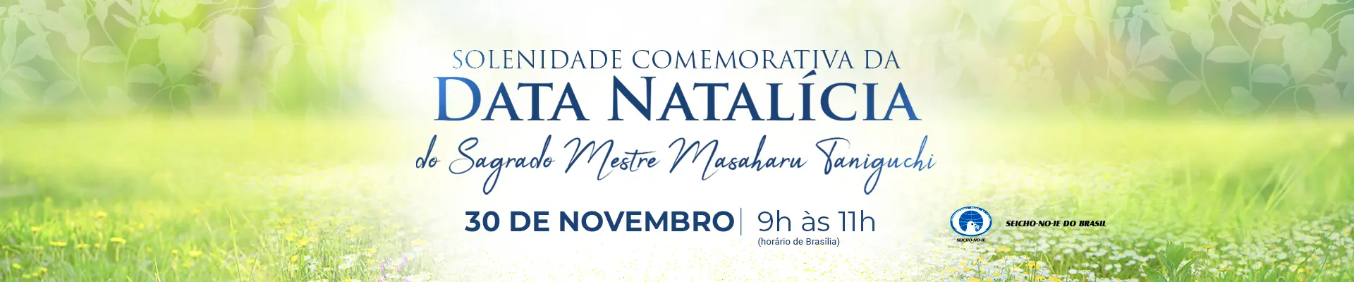 2026 Destaque Portal Data Natalicia SOLENIDADE COMEMORATIVA DA DATA NATALÍCIA DO MESTRE MASAHARU TANIGUCHI Em 22 de novembro de 1893, na Aldeia de Karasuhara, Província de Kobe – Japão, nascia Masaharu Taniguchi, nosso Sagrado Mestre, e fundador da Seicho-No-Ie.