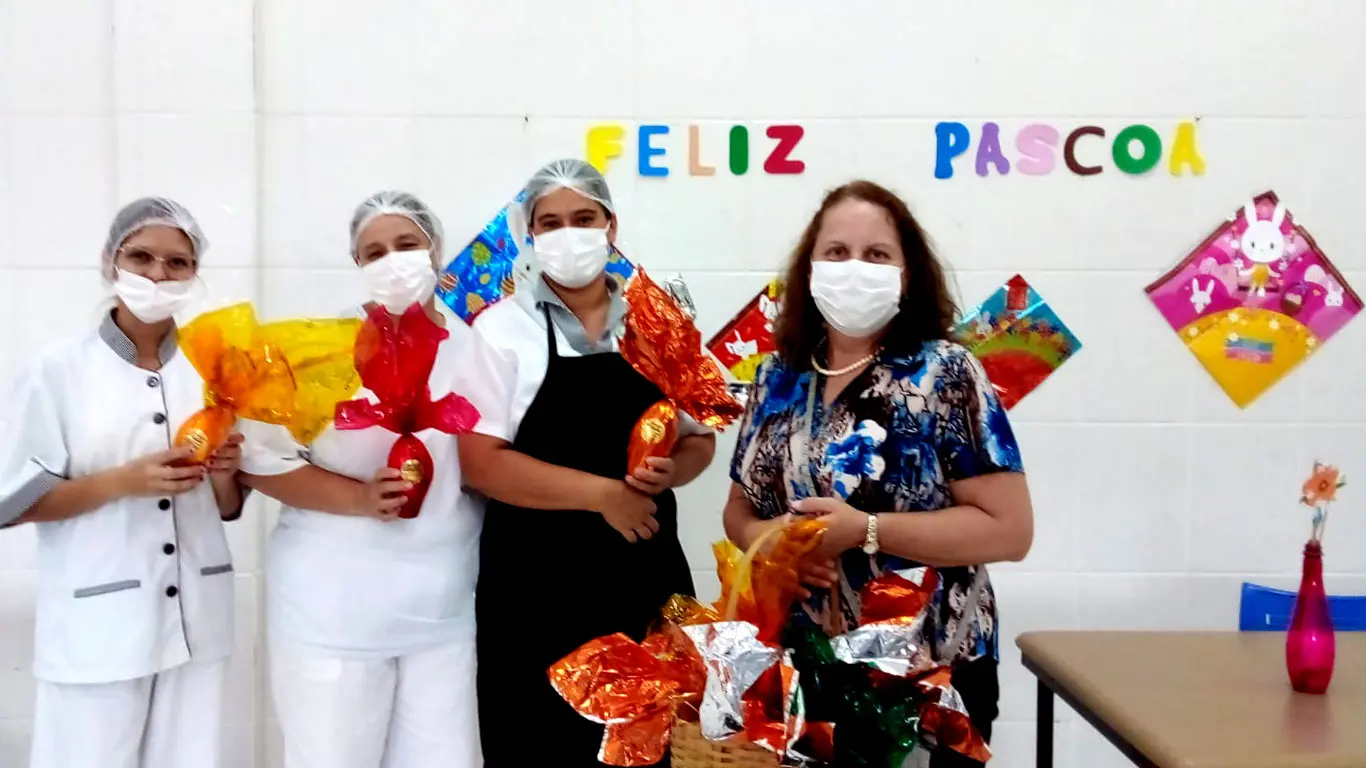 Páscoa delivery: quem não tem mobilidade recebe, em seu alojamento, o carinho da equipe e o ovo de chocolate a que tem direito.